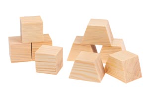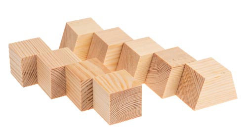 Obsah: 4 borovicové kocky, 4 x 4 x 4 cm, 5 borovicových lichobežníkov, 5,7 x 4 x 4 cm