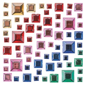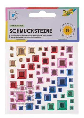 rozmery: cca 6 x 6 mm, 10 x 10 mm, 14 x 14 mm, samolepiace, v rôznych základných farbách a veľkostiach