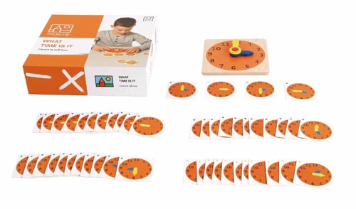 Pochopte hodiny otáčaním ručičiek! Pomocou priložených drevených hodín je možné zaznamenať rôzne časy na vytlačené karty. Karty sú rozdelené farebnou bodkou na celé, pol a štvrťhodiny. Vhodné pre deti od 5 do 7 rokov. Obsah: Drevené hodiny cca 14 x 14 cm, 48 kariet a návod, v nemčine vrátane úložného boxu, 1 sada