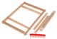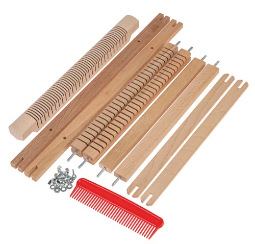 Drevený tkací rám s 28 zárezmi, dodávaný v 6 častiach - rýchla a jednoduchá montáž pomocou krídlových matíc. Jednoduchá manipulácia vďaka obojstrannej niteľnici. Obsah: 1 bukový tkací rám cca 390 x 280 mm, šírka tkania cca 250 mm, dlžka tkania cca 340 mm, 1 nosník tkáčskeho stavu, 2 člnky, 1 niteľnica, bez priadze, vrátane návodu v nemčine, 5-dielna sada.