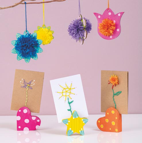 Drevené kvety na zavesenie, prírodná povrchová úprava, bez dekorácie. Sada obsahuje: 16 kvetov na brmbolce a 16 malých kvetov na dekoráciu, rozmery: cca 5 - 7,7 cm, otvor: 3 mm.